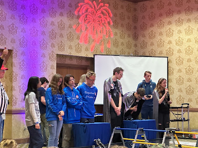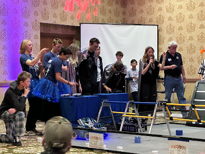 Two teams from each state get to go to the world championship in Houston: one spot going to the winning alliance captain and the other going to the winner of the Inspire Award. The awards were announced and as it got closer to the end, the Silver Circuits did not receive any and the anticipation was growing - everyone was wondering 'are they gonna get it?' Then the finalist for the Inspire award was announced and it wasn't the Silver Circuits and it felt even more anticipatory.......and then they were announced the winners of the Inspire award! After all their hard work and outreach, they are going to Worlds!