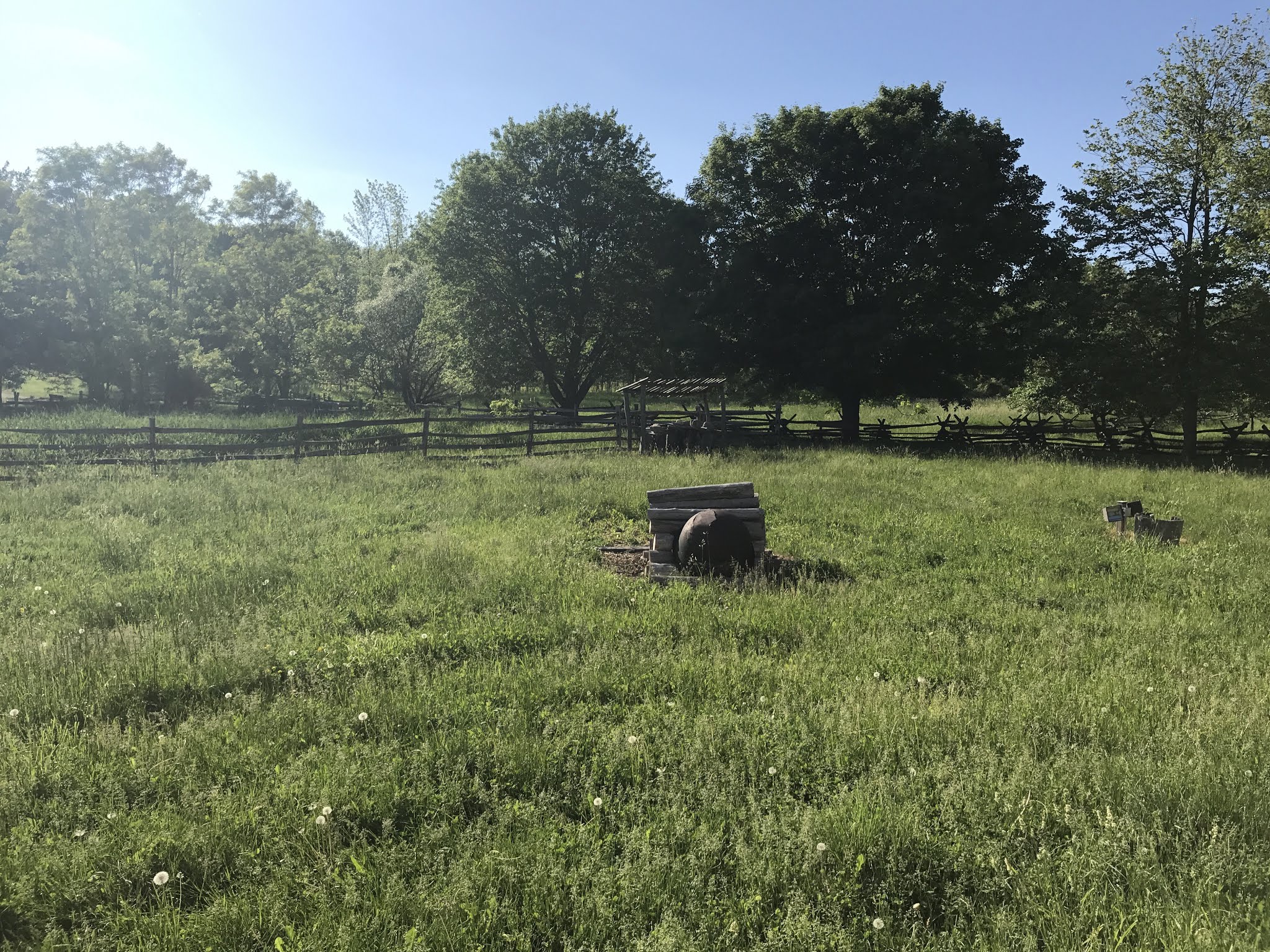 Just outside the framehouse, it was a beautiful day. I loved the trees and the fences.