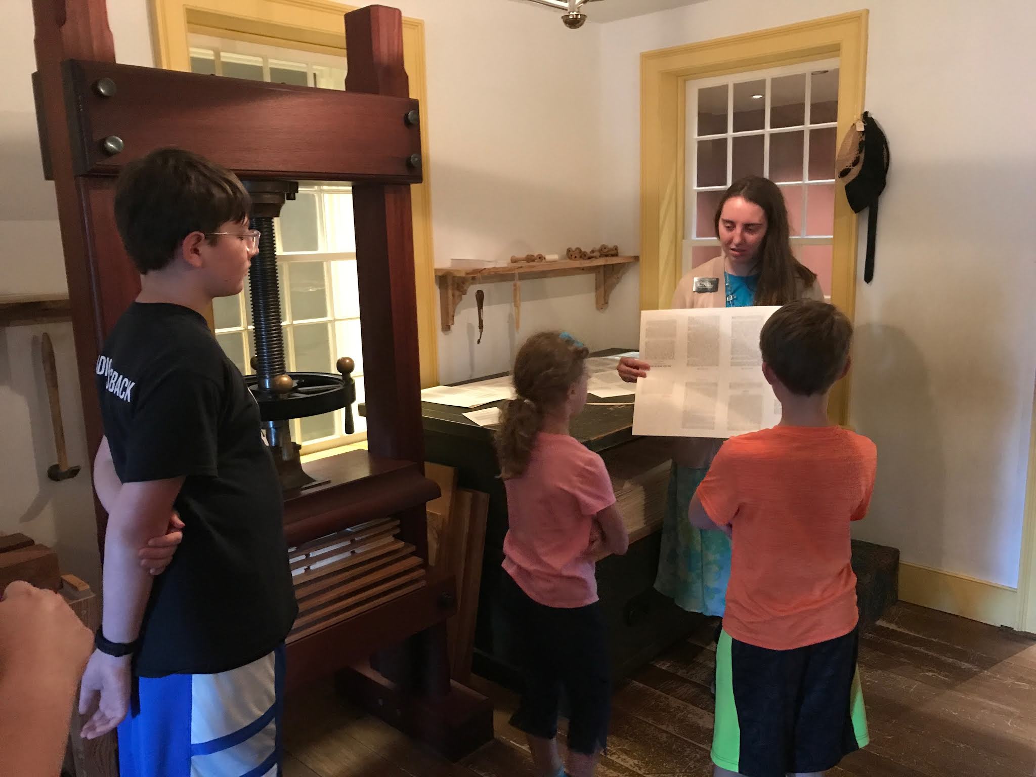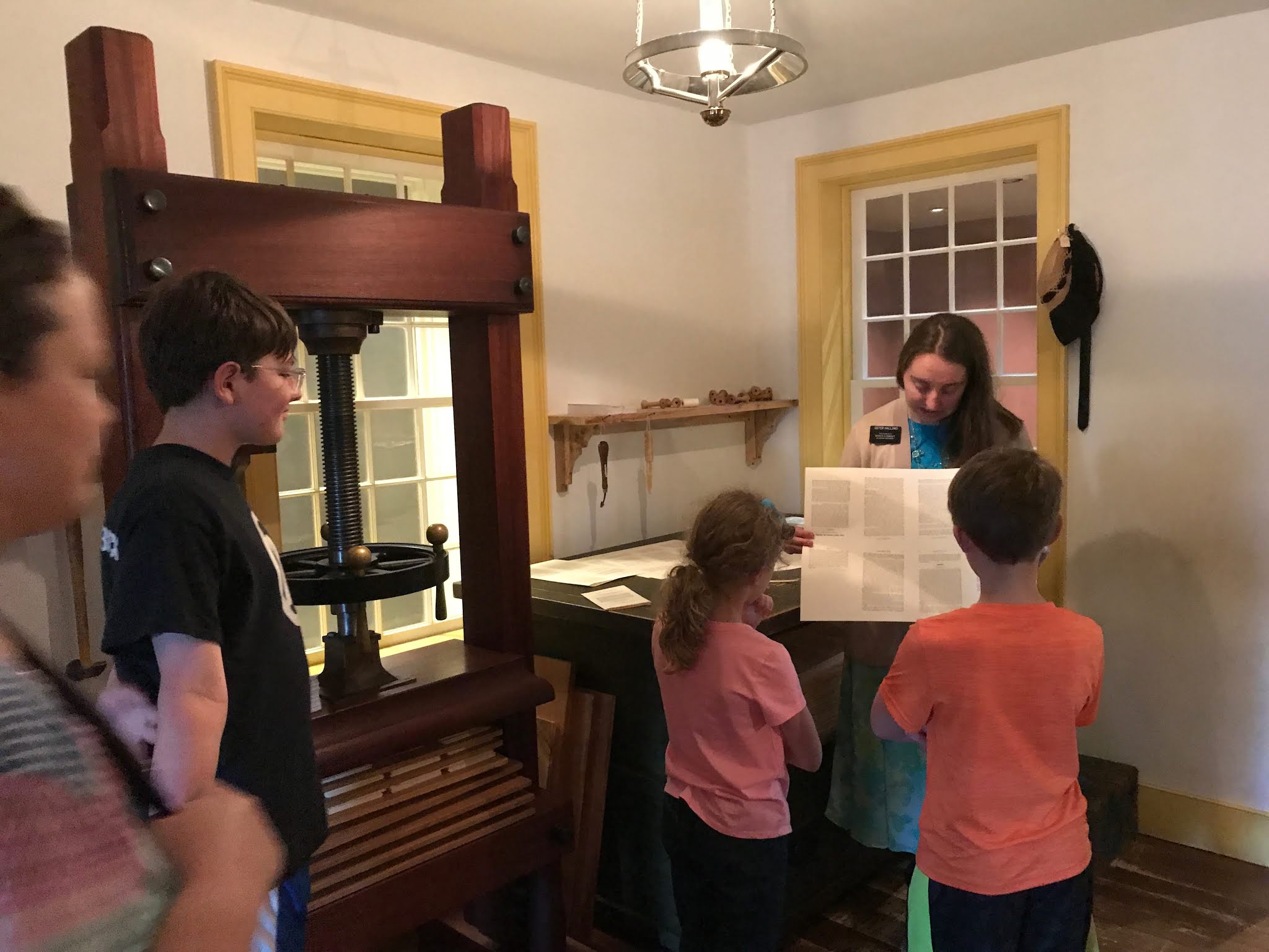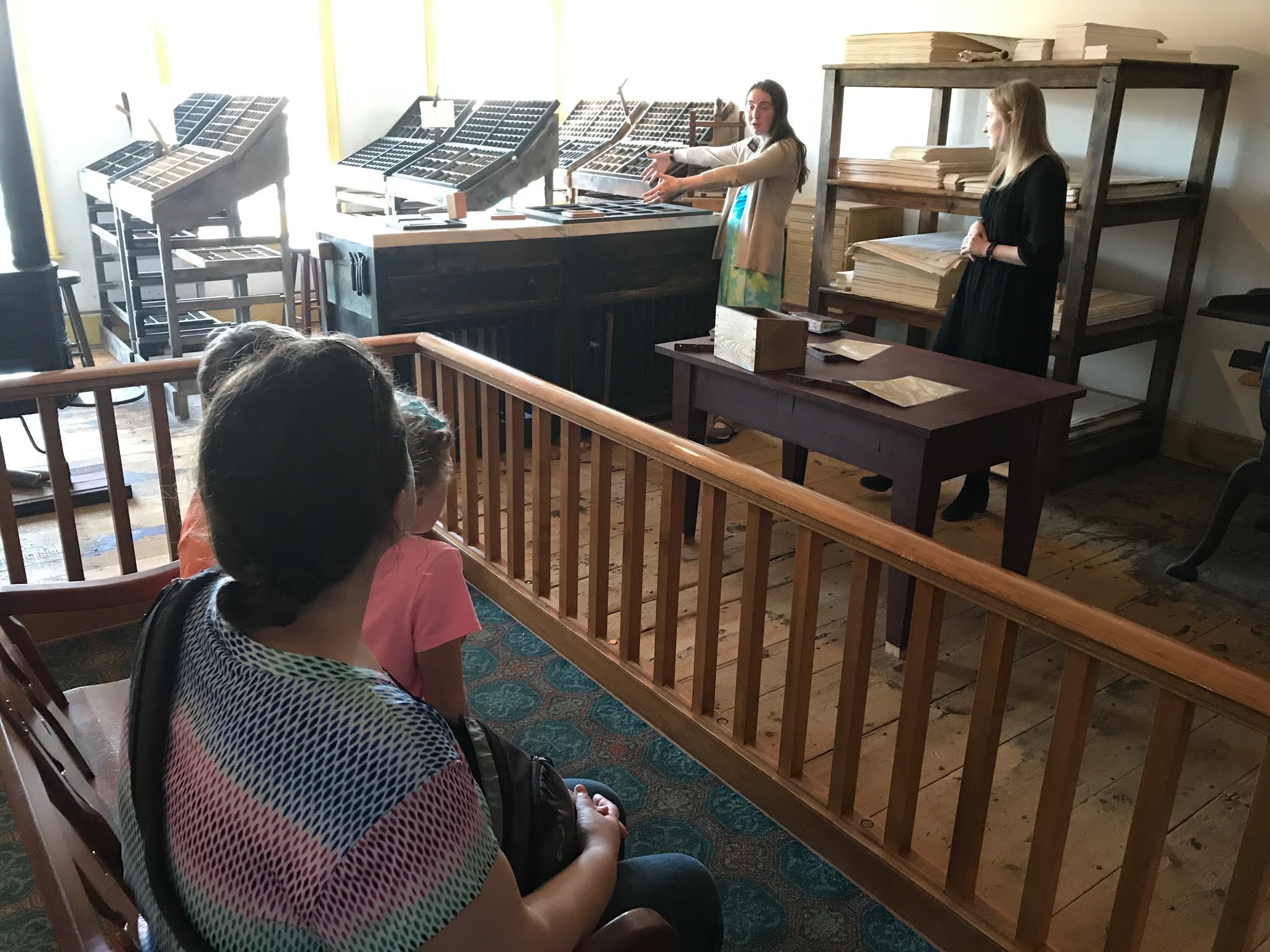 The sister missionaries gave us a tour of each floor of the printing press; they demonstrated typesetting and inking the press.