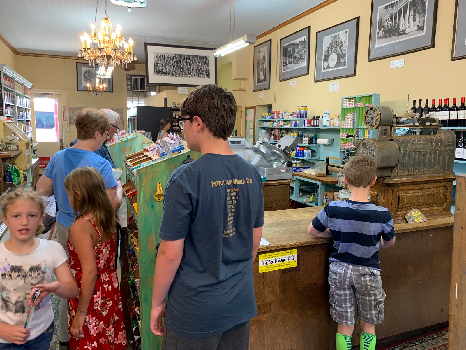The cash register in the market is over 100 years old and still works.