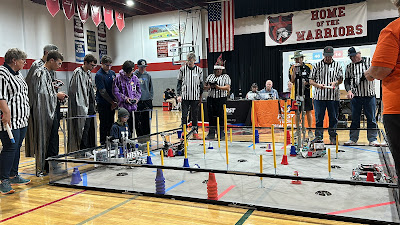 They won! Their robot has two arms and it stacked the most cups on the rod.