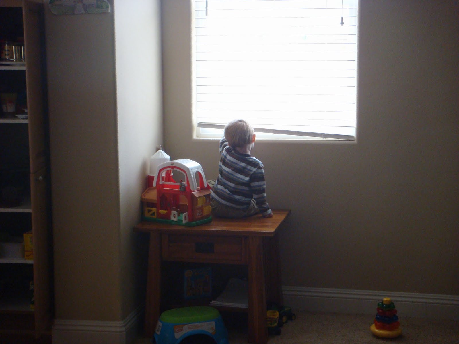 Tucker wanted to get a better look so he climbed on top of the table.
