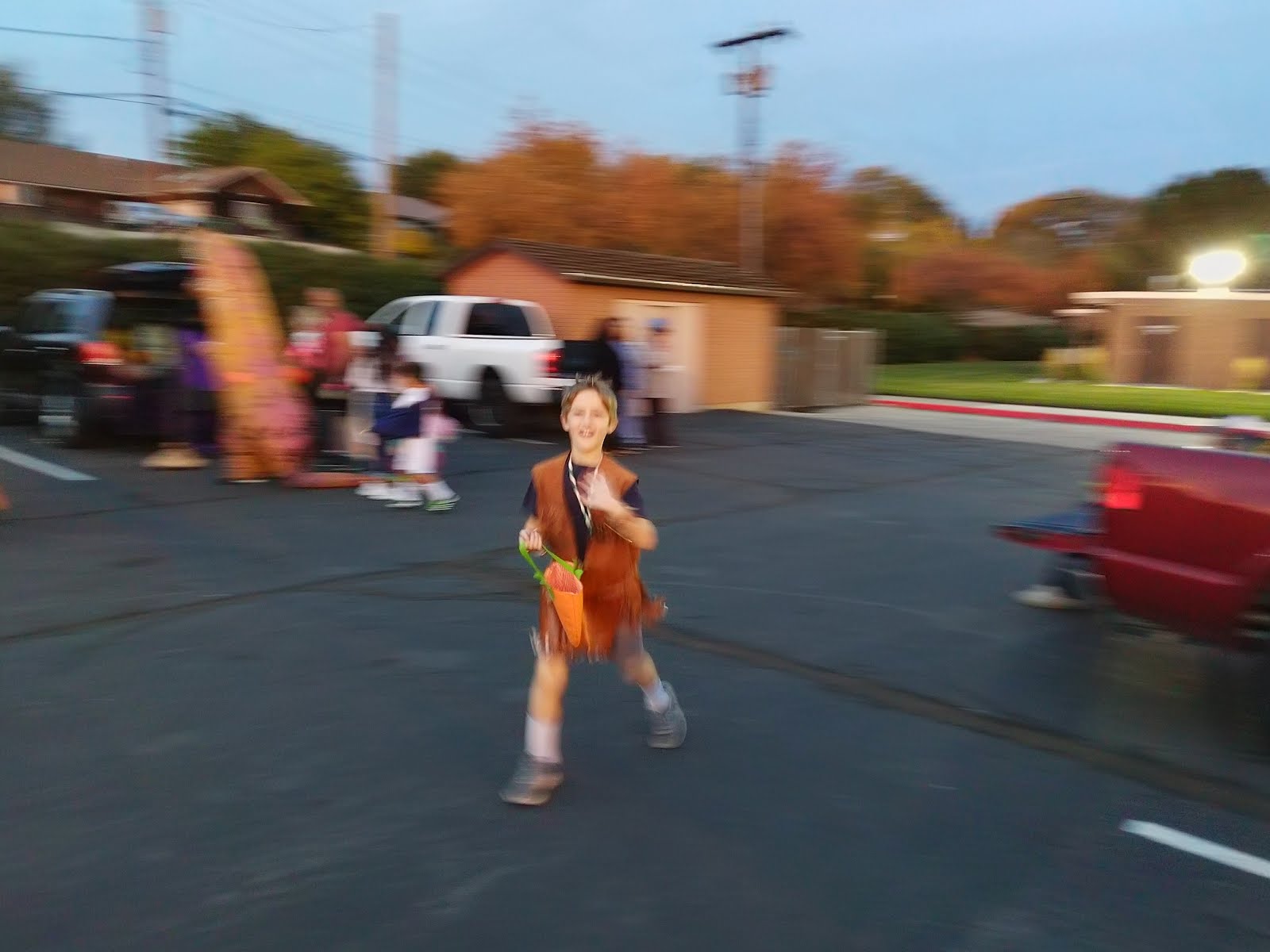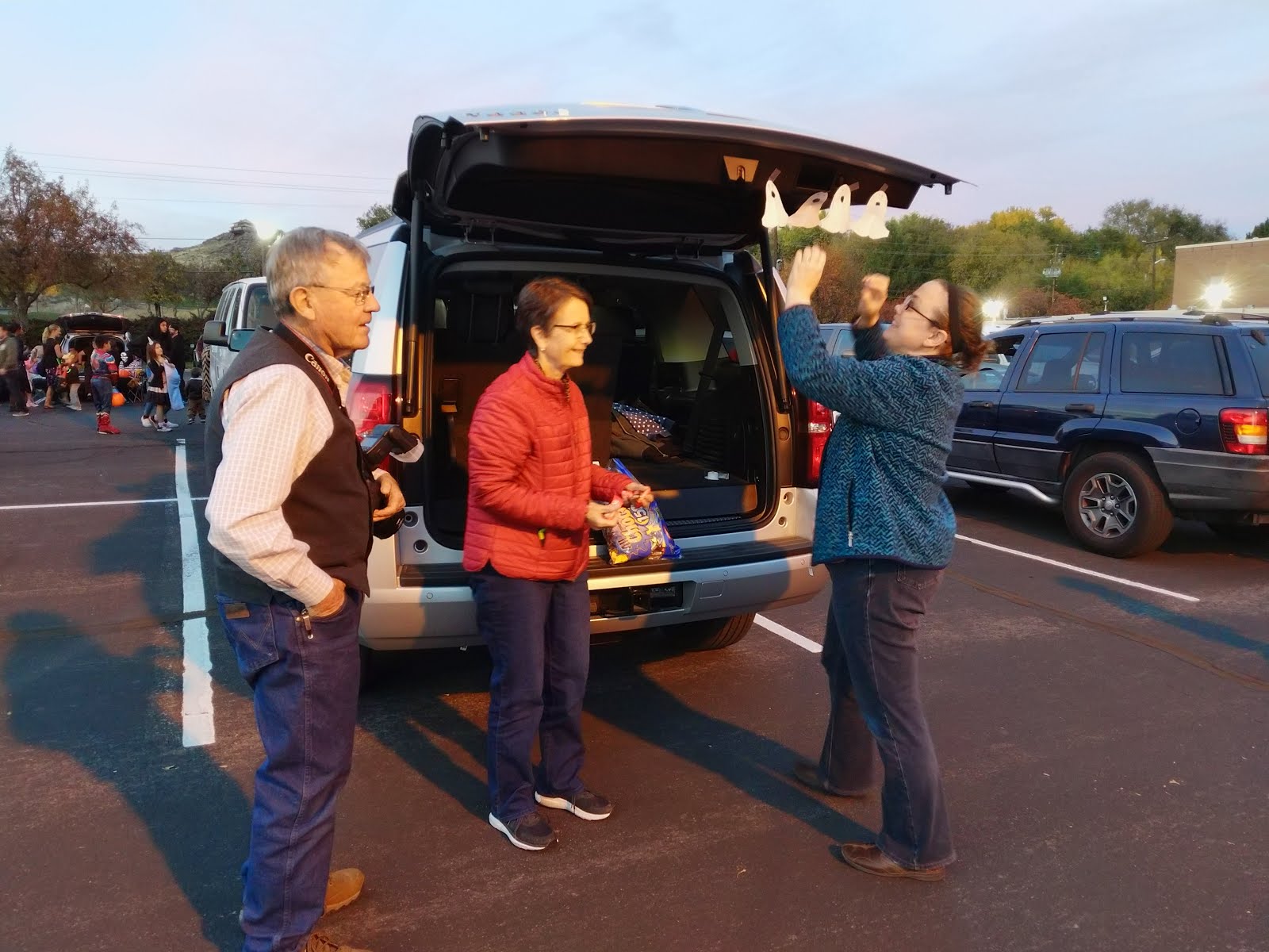 The Church hosts a 'Trunk or Treat', where the kids can trick-or-treat at the decorated cars in the church parking lot. It was nice and quick, and the kids had a great time.