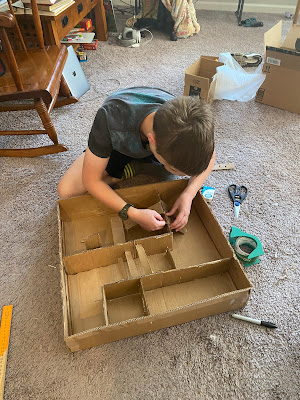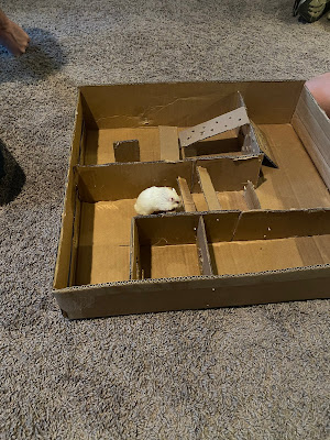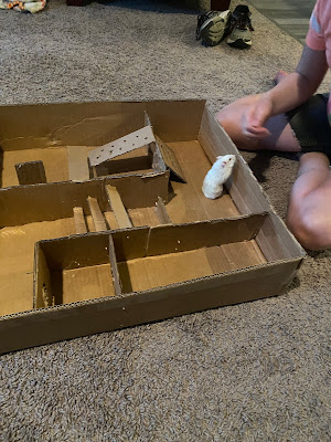 Tucker got some cardboard together and started putting together a hamster maze.