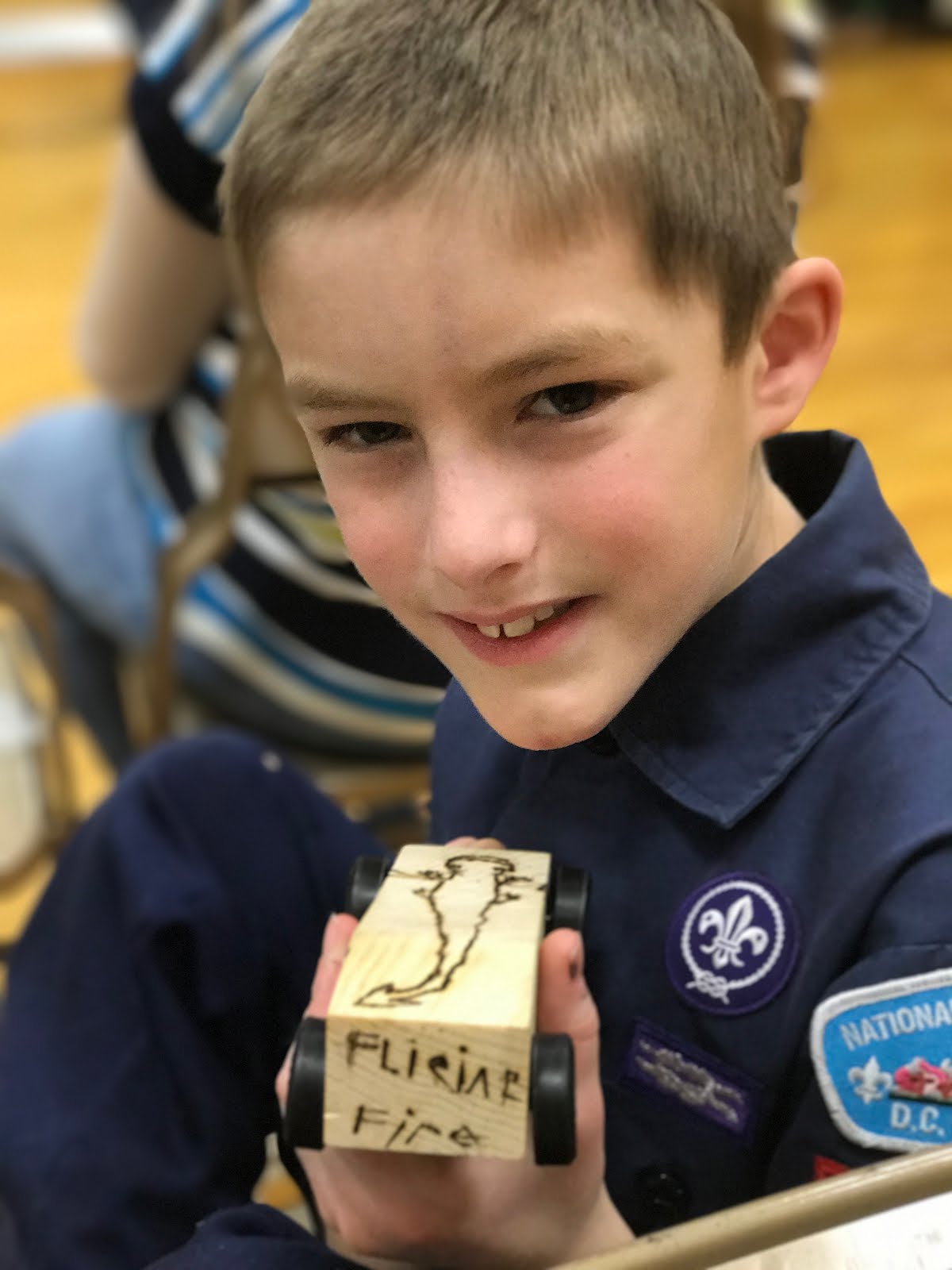 It's Cub Scout Pinewood Derby time again! Tucker decided to burn a design into his car using Carson's wood burning kit. His car was fast and had a great, unique style.