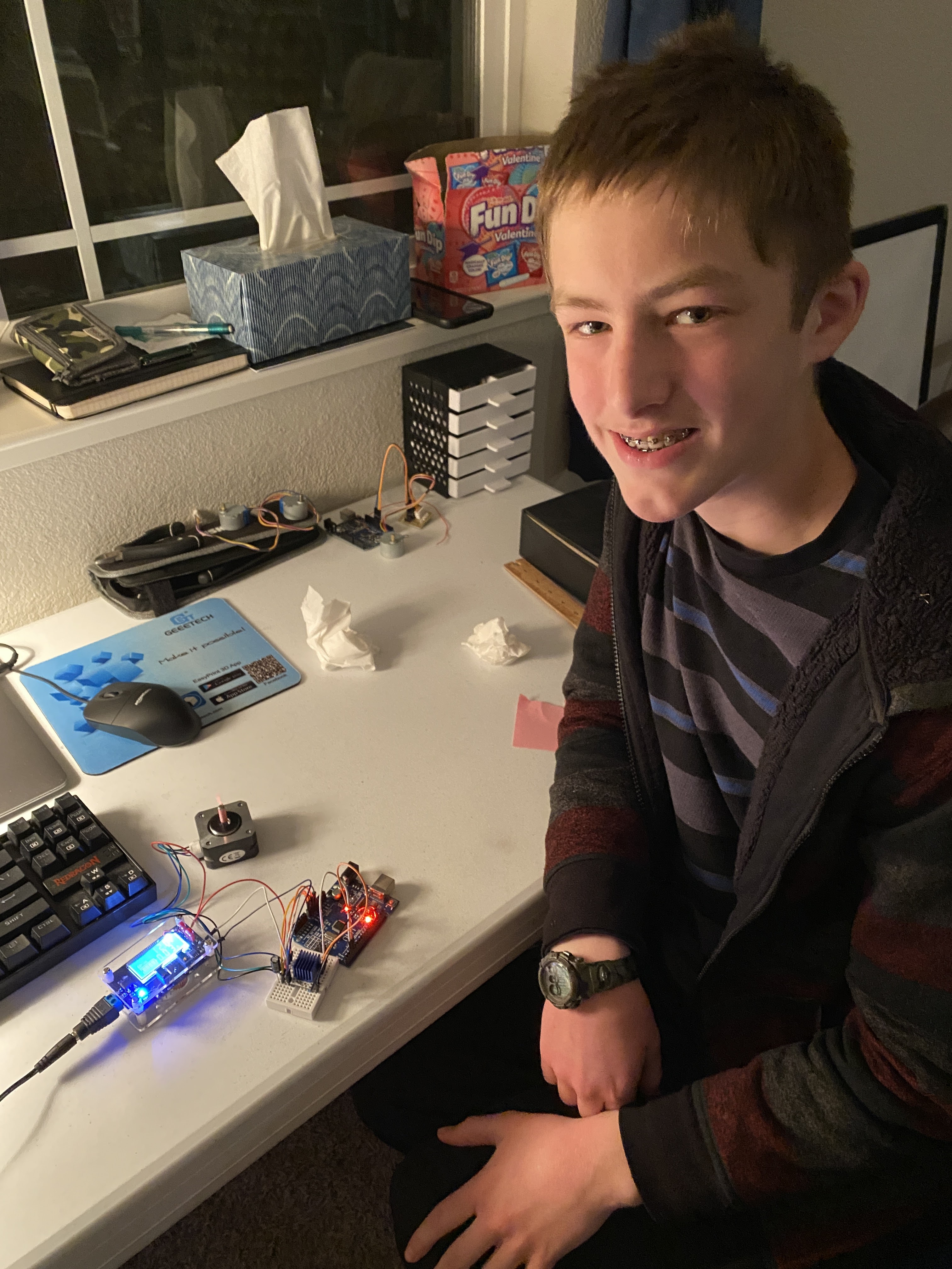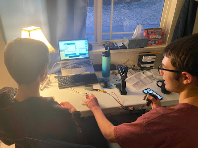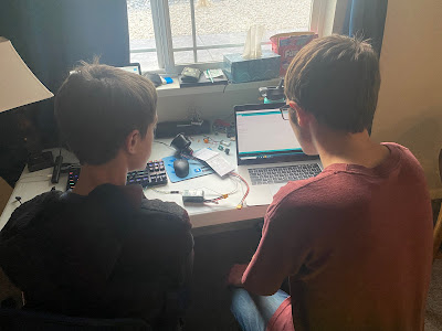 Working on Carson's electronic Pinewood Derby Car