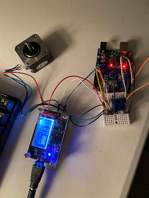He is turning a stepper motor with his circuit.