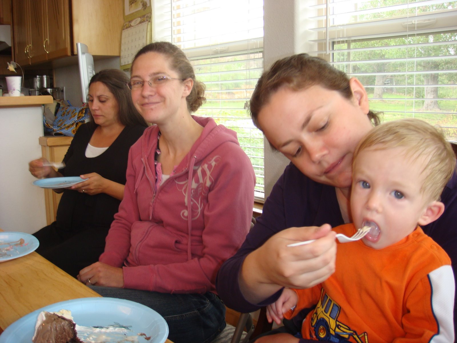We had a small get-together at my parents house for Carson's birthday. Carson was really looking forward to it and had a great time. The cake turned out SOOO good too -- we got a Baskin Robbins Fudge Crunch cake.