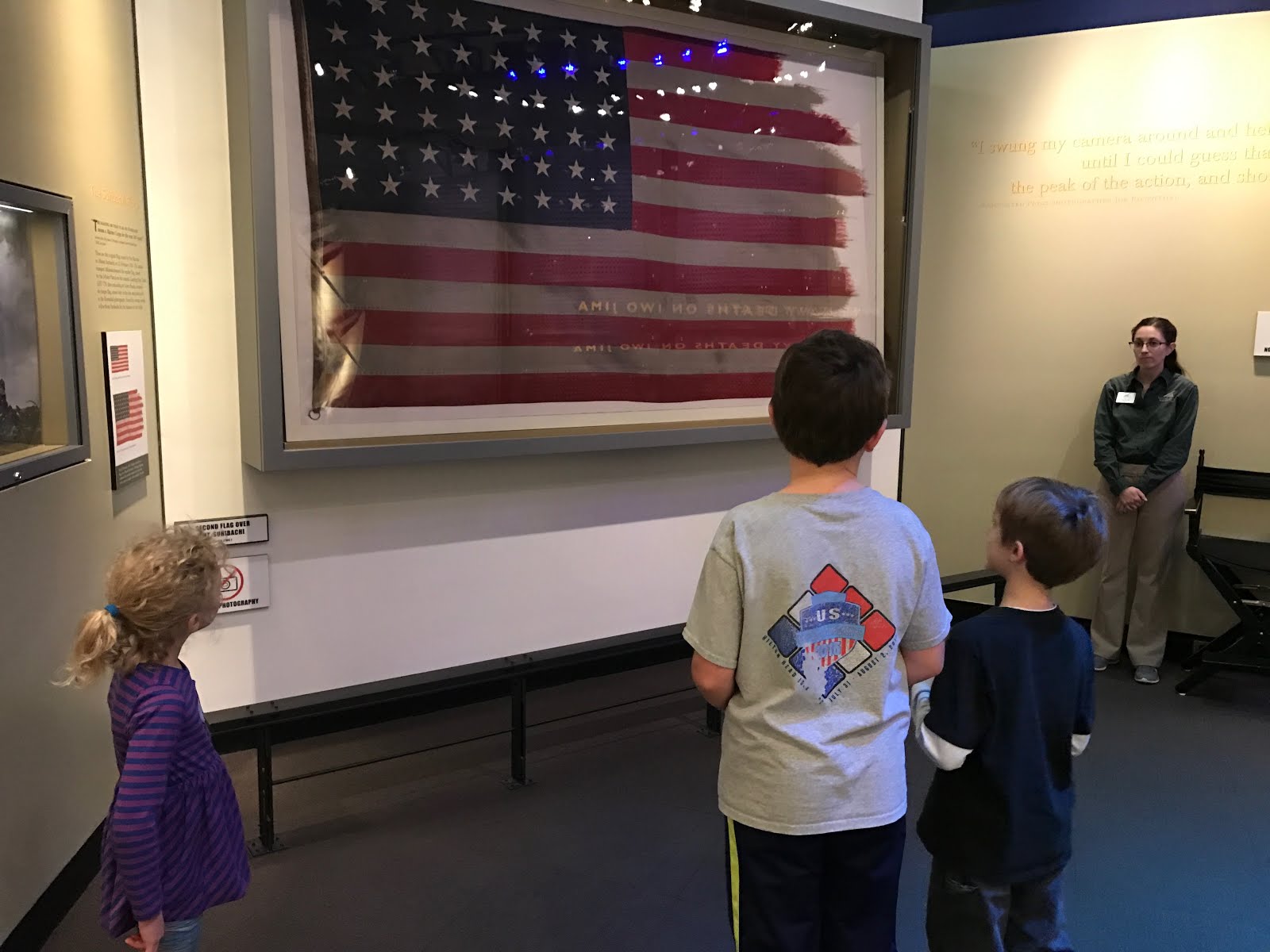 This is the actual larger flag that flew over Mt Suribachi at Iwo Jima. Inspiring to see.