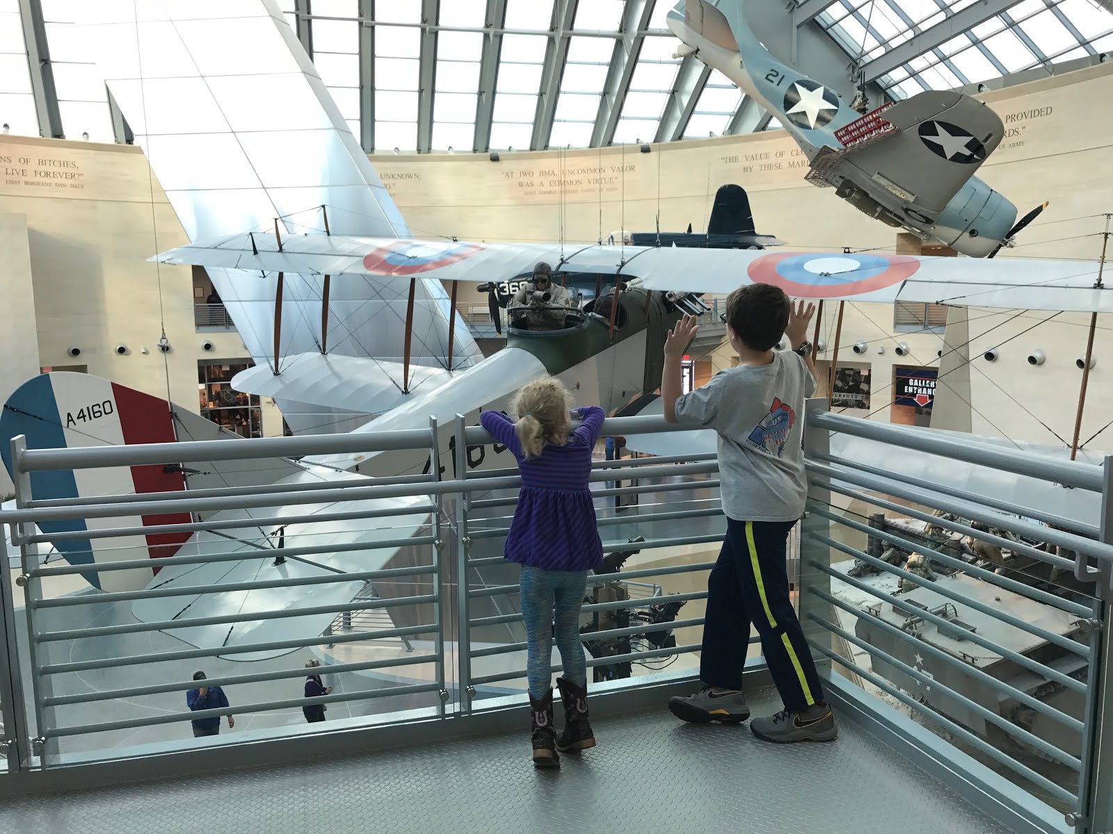 We were in awe; even walking up to it is impressive. It is an amazing and unique building. Carson pointed out that it appears to be inspired by the Iwo Jima Memorial statue. For a museum largely about war, it is surprisingly kid friendly. We loved it and hope to go back soon to keep learning more.