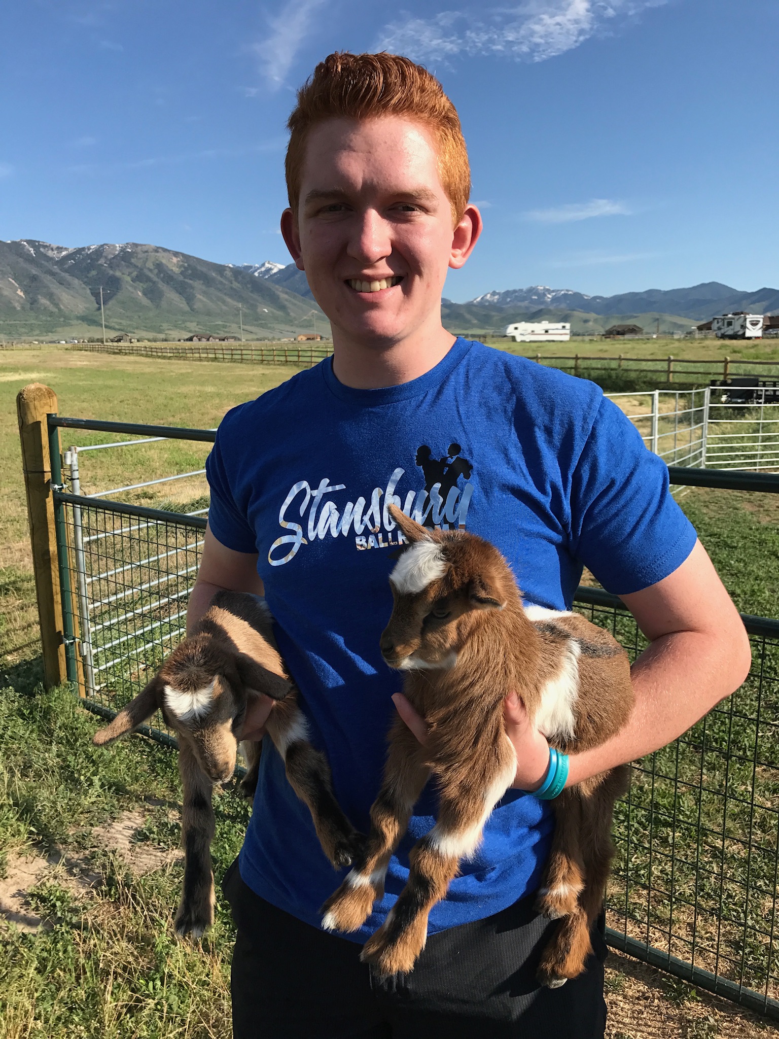 Cameron with the baby goats
