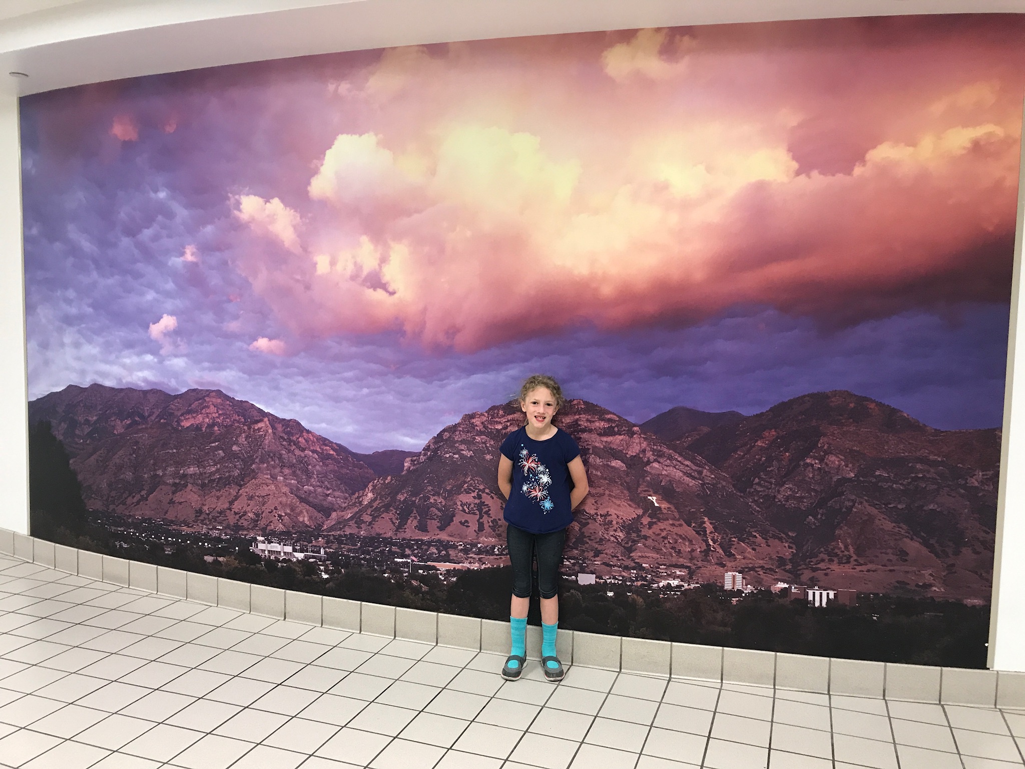 Savannah in front of a mural at BYU Student Center