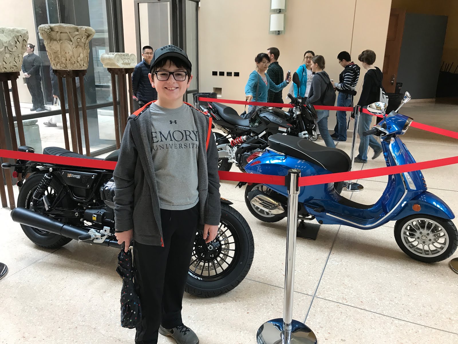 They had a Moto Guzzi, Aprilia, and Vespa on display.