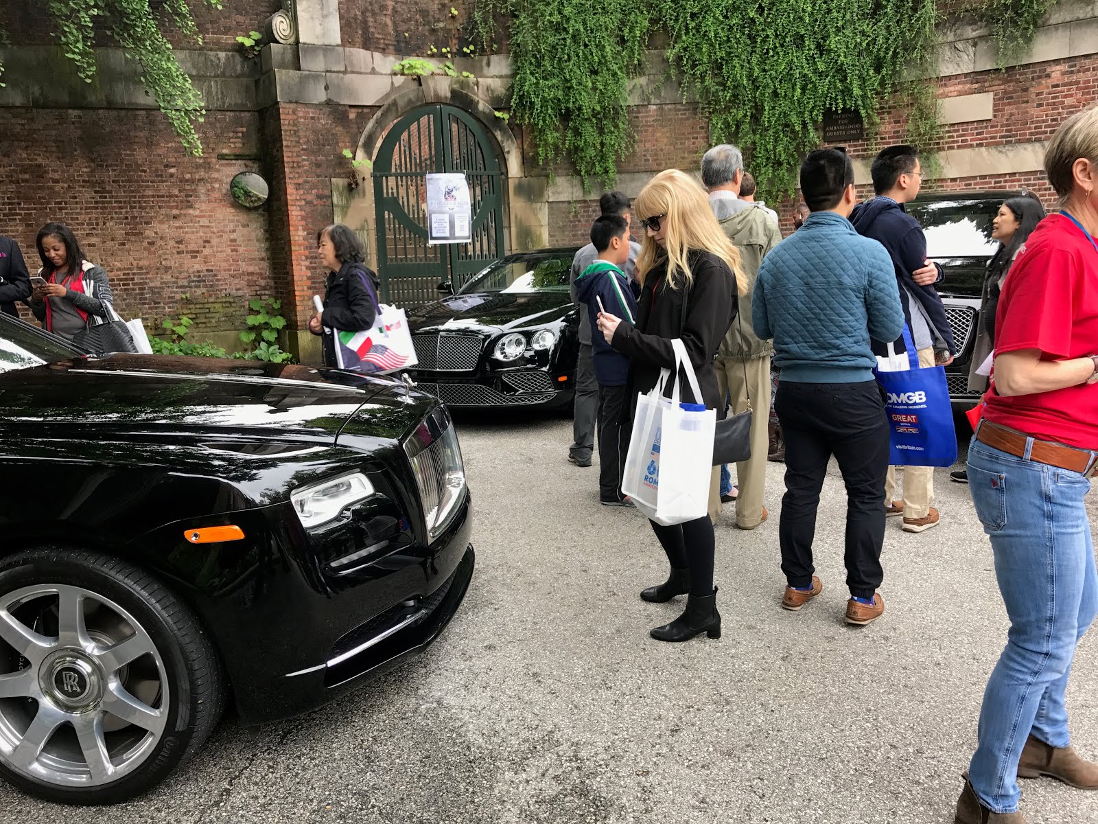 A Rolls Royce, some Bentleys, Land Rovers, Jaguars... Beautiful cars on display.