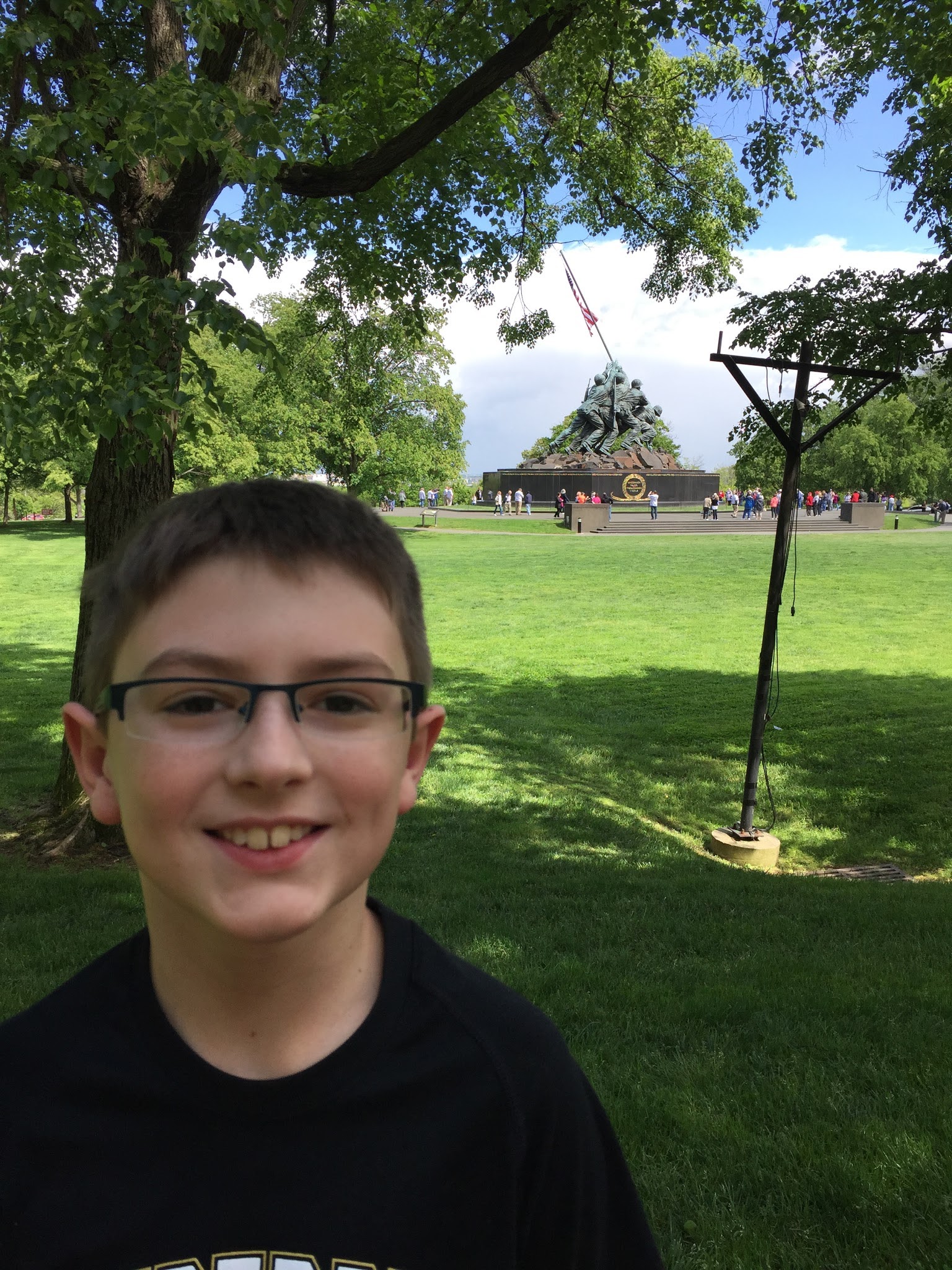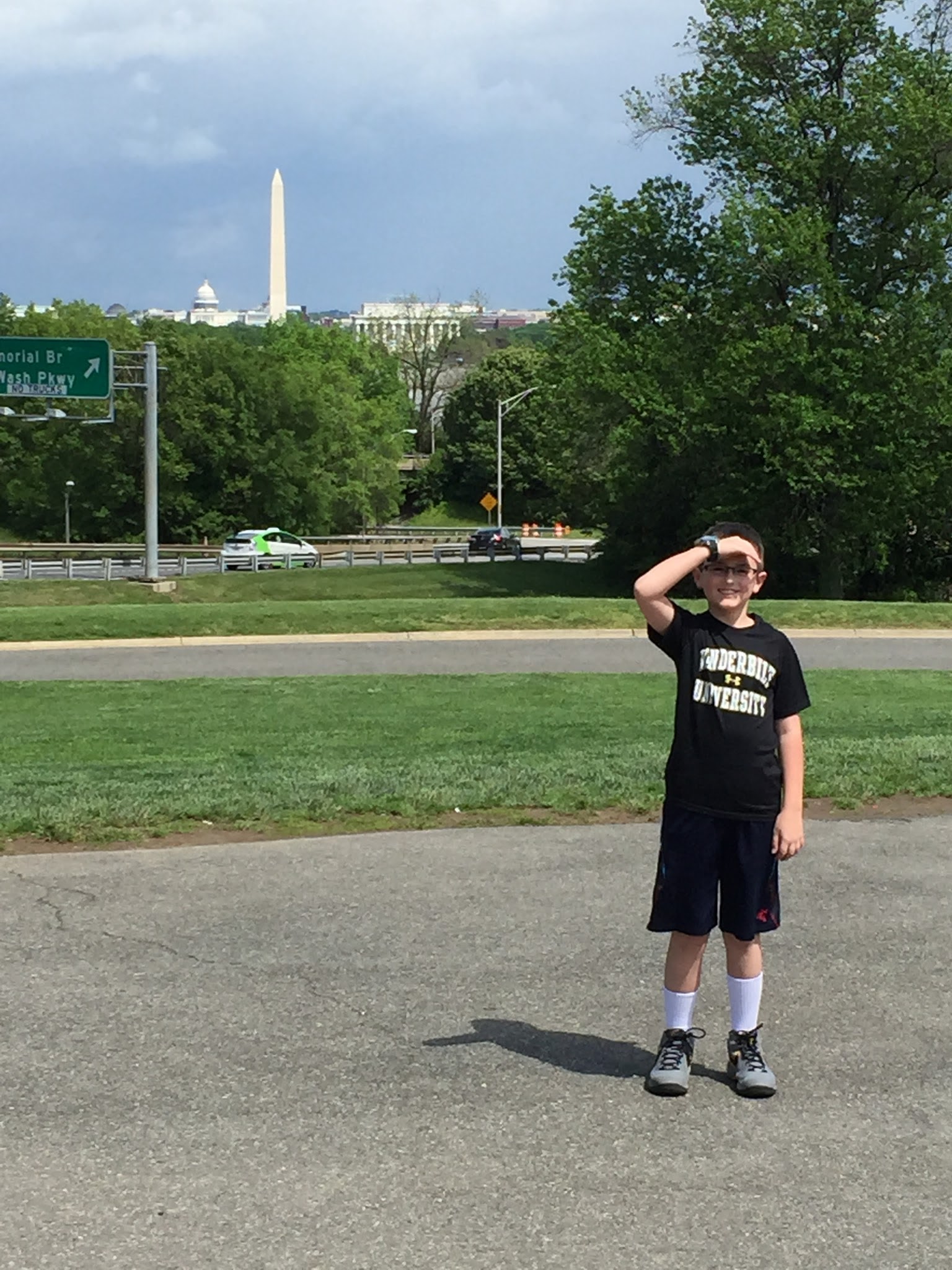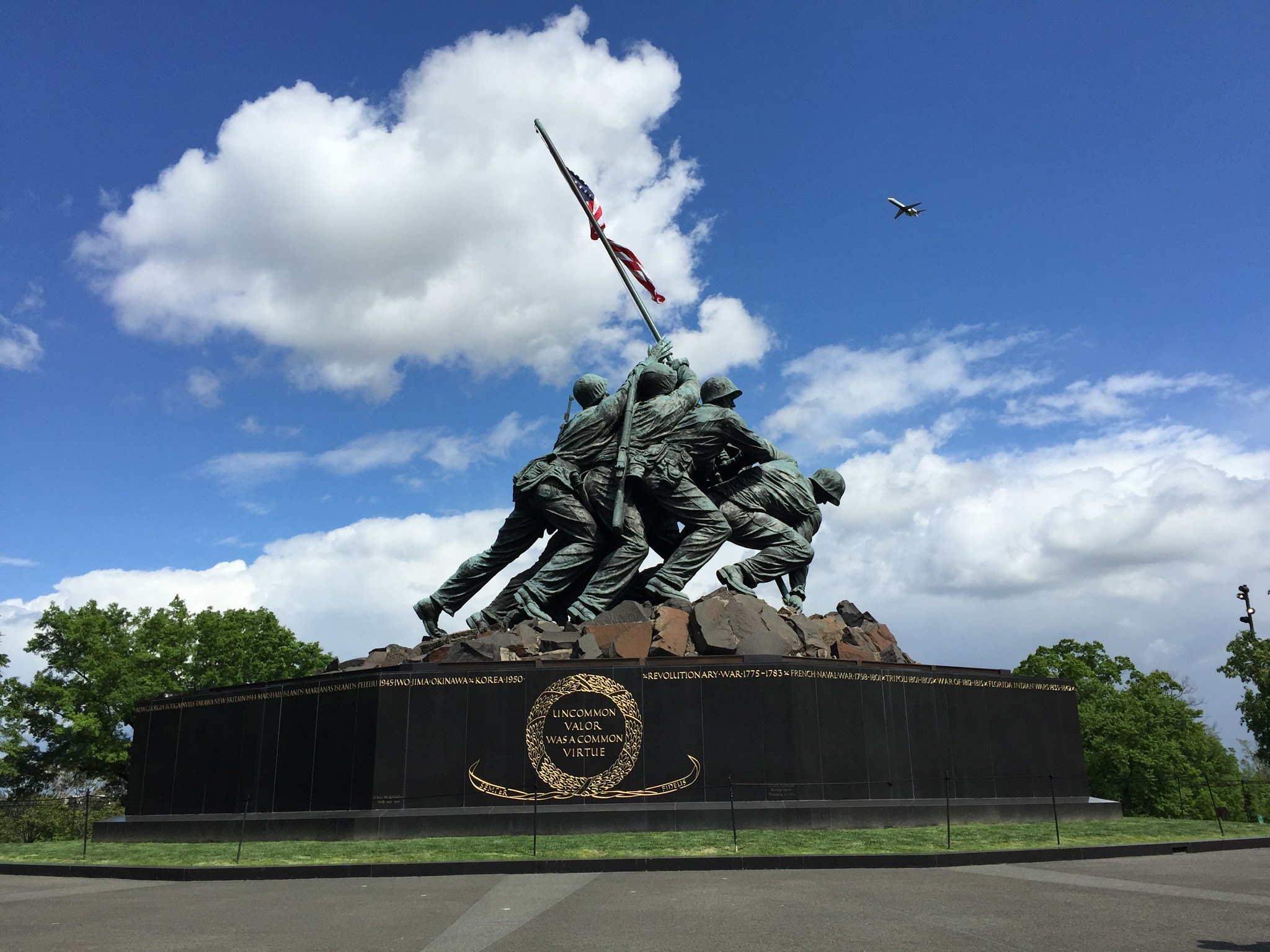 this is standing at the Iwo Jima statue and looking away from it and you can see all the other monuments behind Carson.