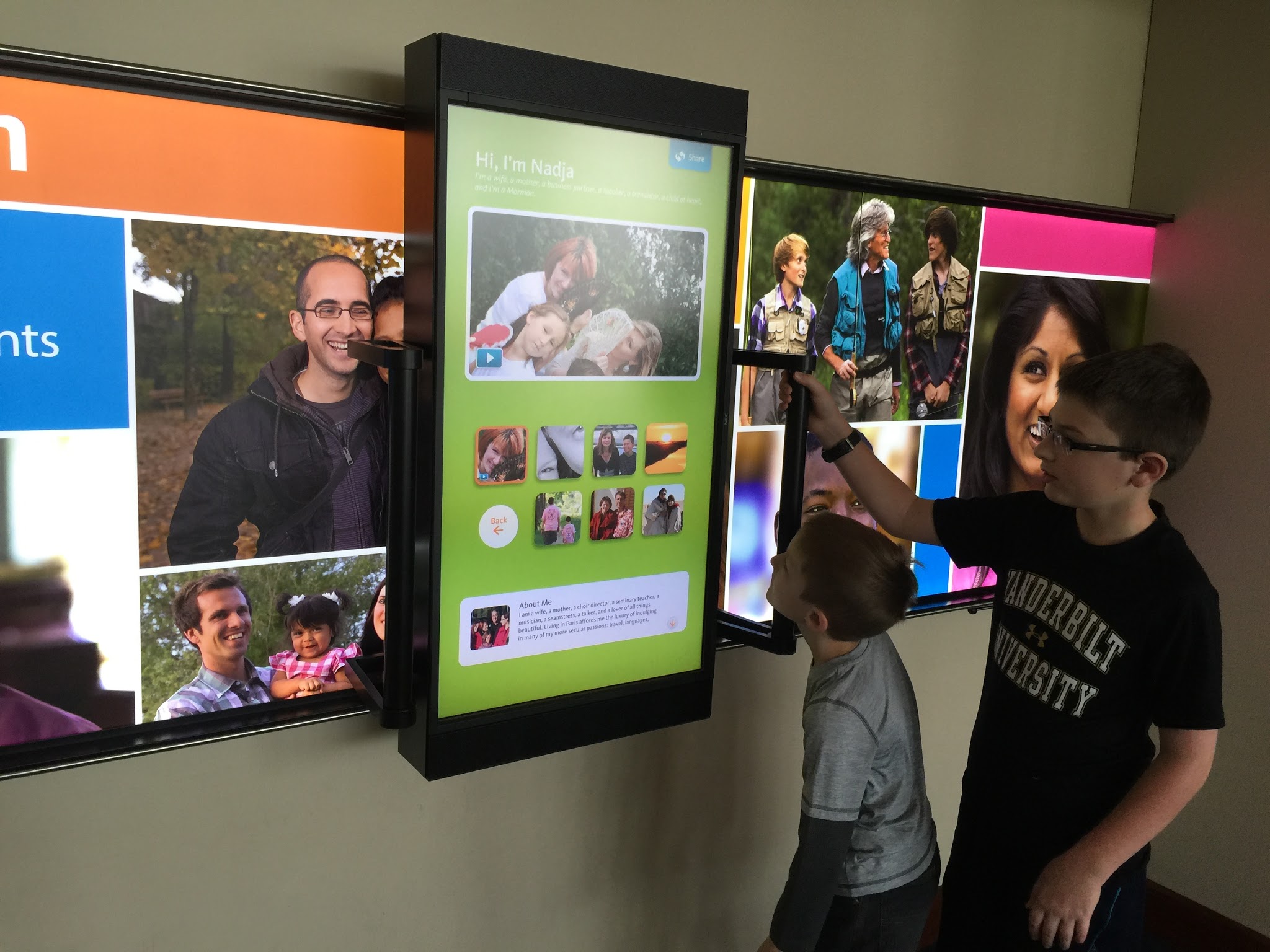 you could move this big screen over different pictures to see different stories of church members