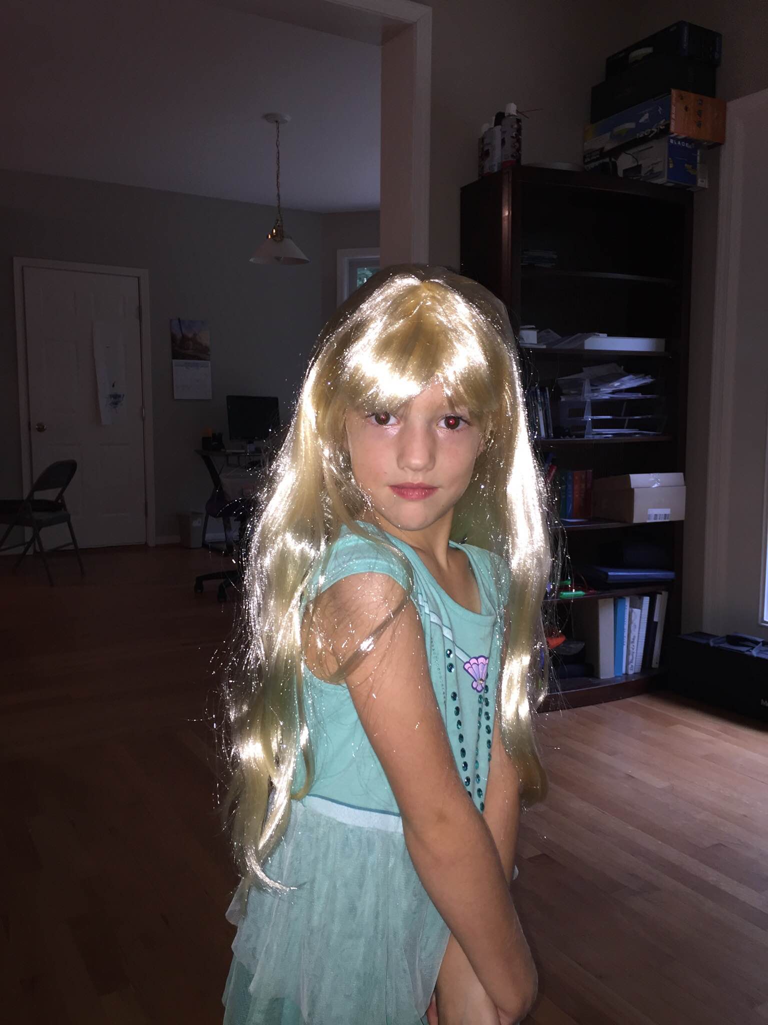 Savannah used some birthday money to get an Elsa wig.