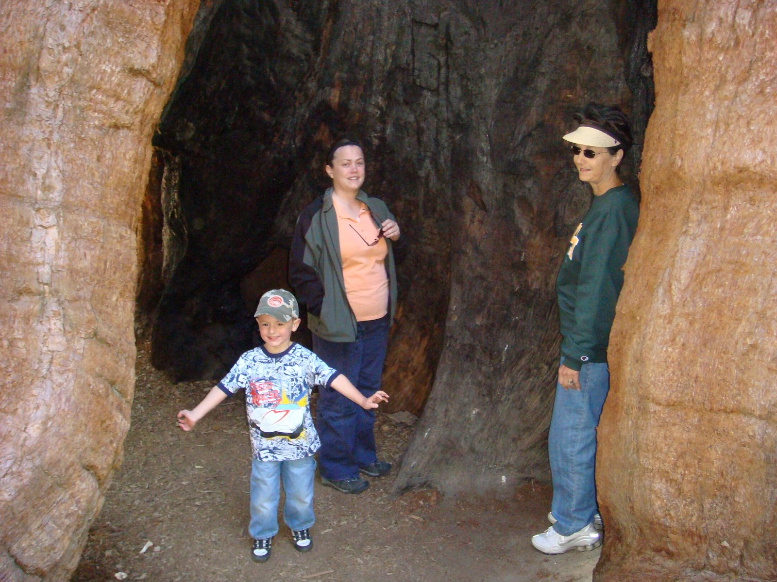 (Below) We went to the trail of 100 Giants, and this was the first giant sequoia on the trail. Most of them had been burned out on the inside, but still seem to be standing tall and doing fine. We could walk through the inside of this one.