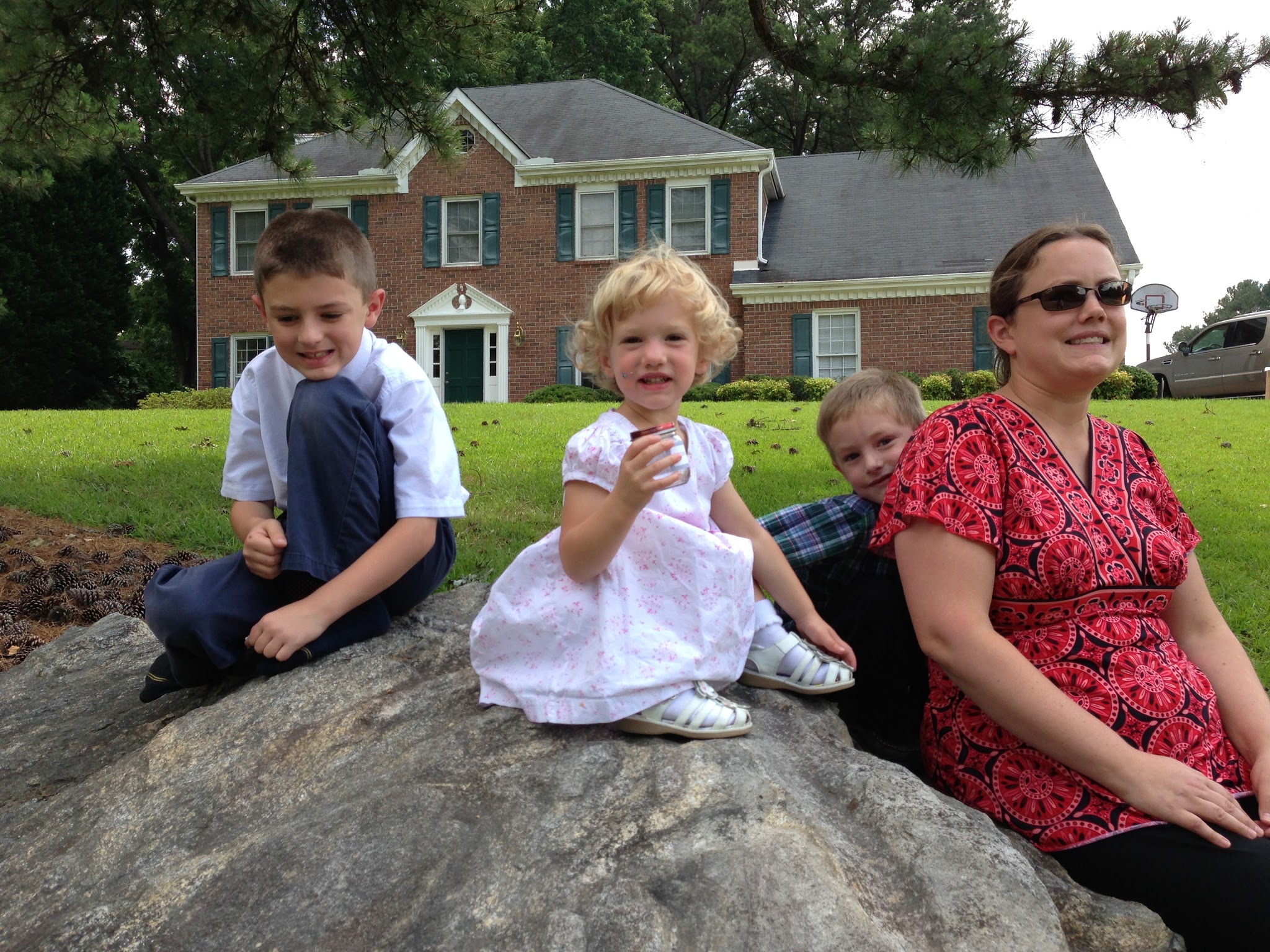 June 14th - the kids and I go to Chick-fil-a while Keith has to stay at the house while the fridge, washer and dryer are delivered. Chick-fil-a is a great restaurant! I like how they hire all ages of people to work there and their menu has salads, and real chicken nuggets, real lemonade, chicken salad sandwiches, etc. They have tables outside with umbrellas and a playplace - love it. We also went to Target a few times for their mega air-conditioning! What a relief! After being here now for a week and a half, I can see now that the humidity is here to stay, but the tempurature was really hot those first few days, it's more mild now. So we got our appliances, but they couldn't install the dryer because the tubing for the vent wasn't up to code. In other words, everything is way old in this house and nothing has ever been replaced, so we're running into all these roadblocks now. Keith took care of that though; he went to Home Deopot and got some new tubing and installed it all himself! We really like our Maytag washer/dryer and Samsung fridge.