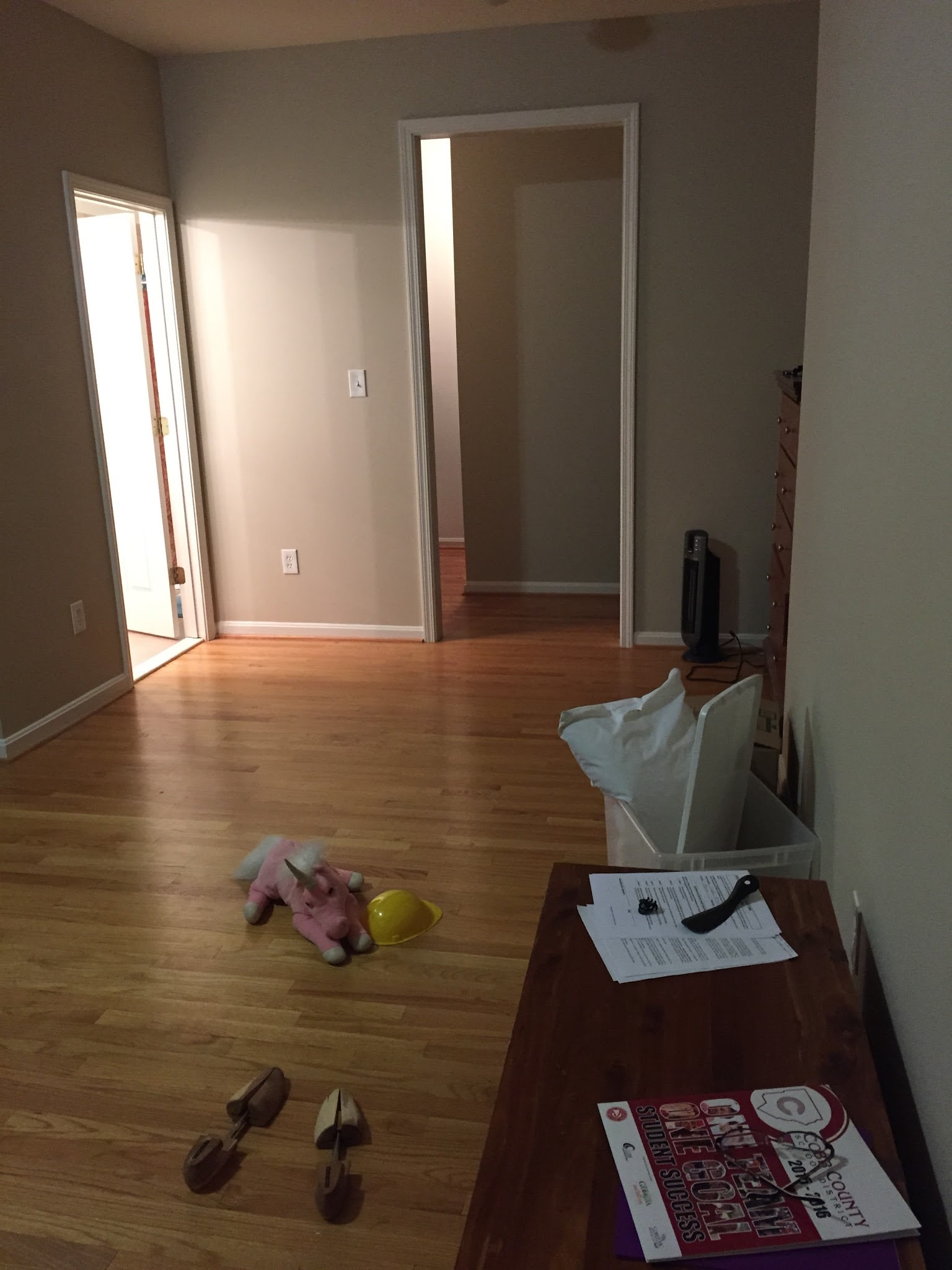 Excuse the mess, but we live here :) It's so nice to have wood floors, we got tired of carpet in Marietta.