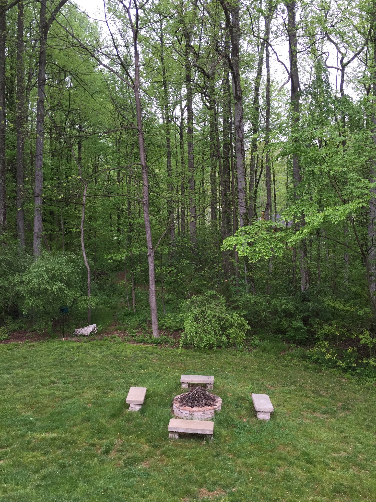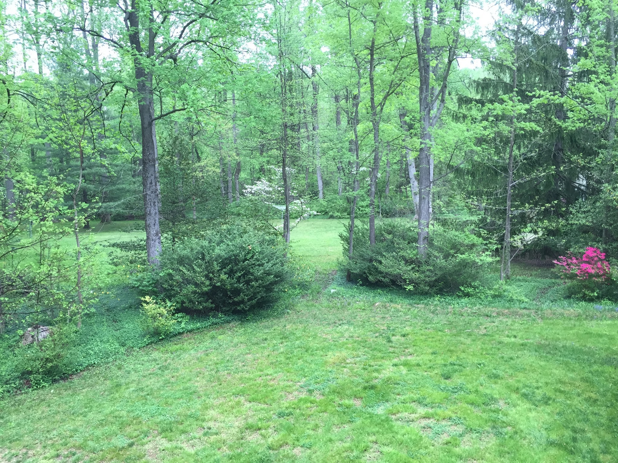 Looking to the right at our landlord's yard, that's where the tree swing is, towards the left in this picture.