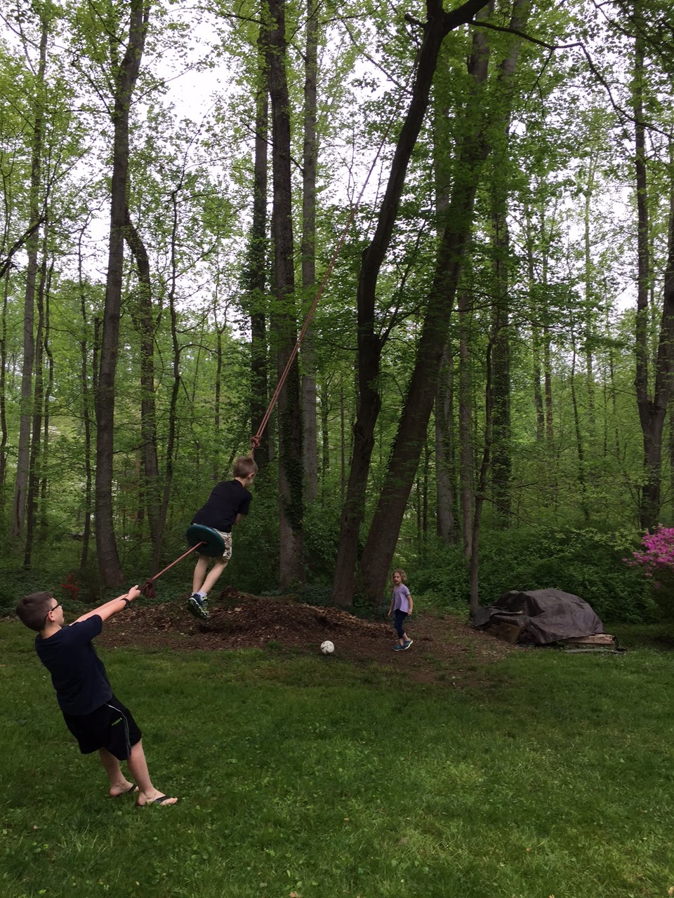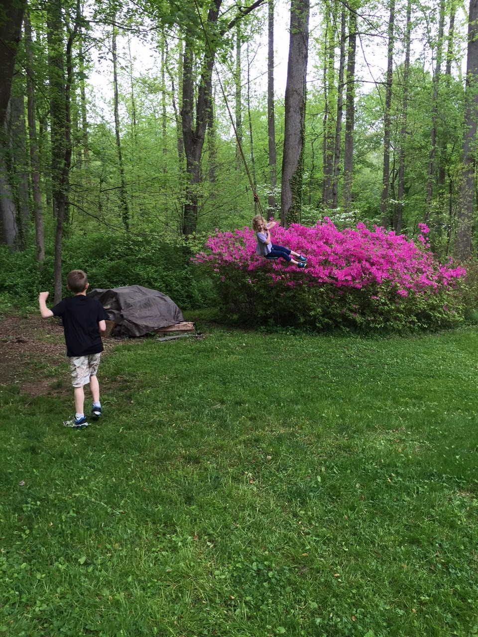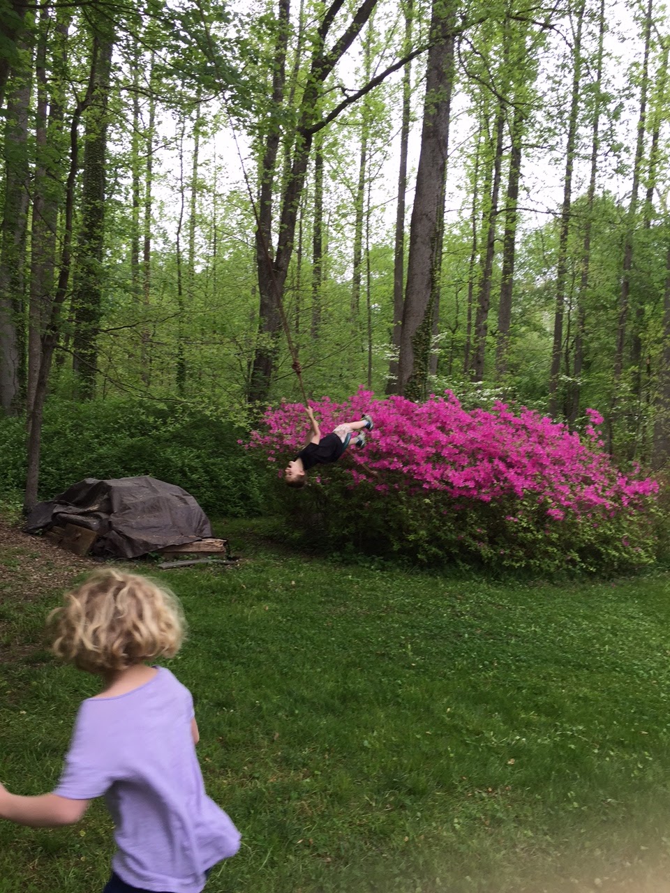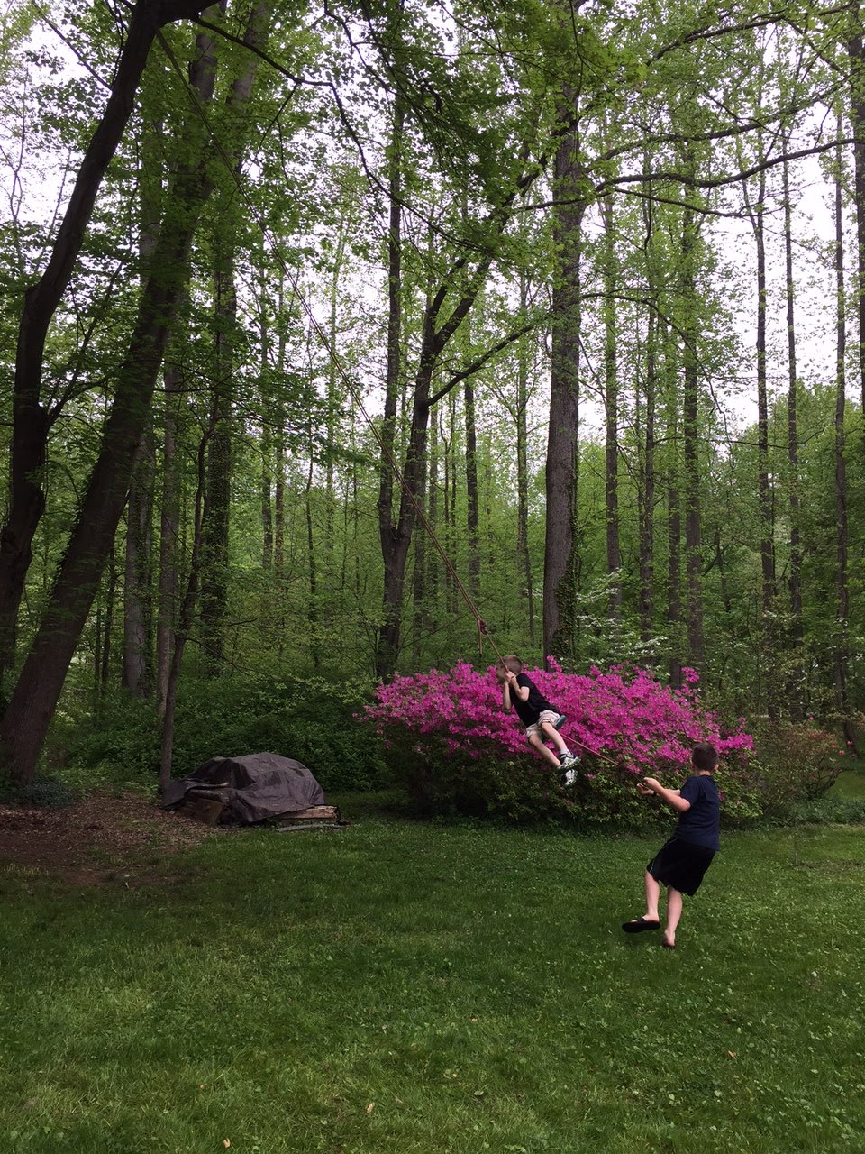 The landlord (Brian) has a large grassy yard and a tree swing at the back of his yard. He lets us come and go as we please, which is so nice cause the kids LOVE this swing.