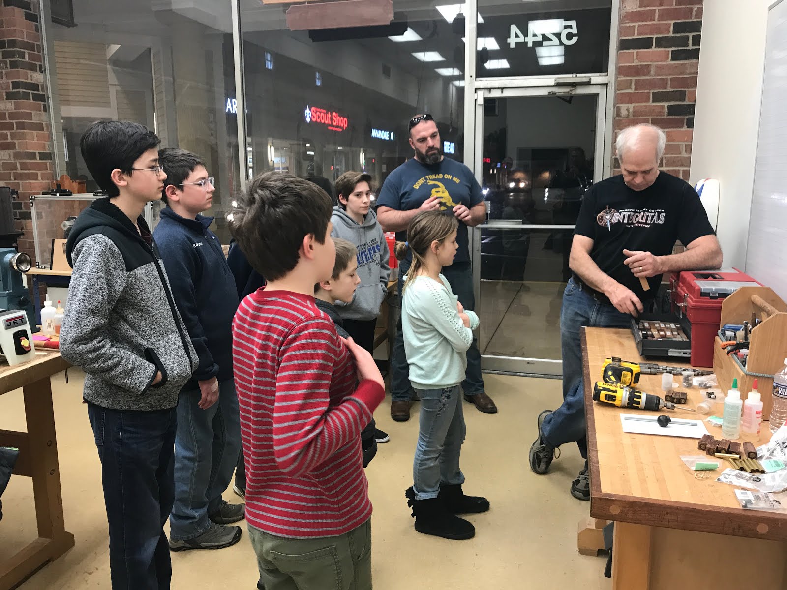 Carson and Tucker used some of their Christmas gift money to sign up for a woodworking class at the local Woodcraft store.